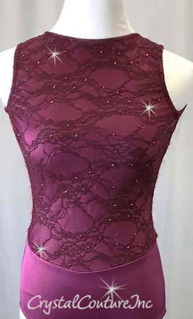 Custom made Ruby lycra leotard with Floral lace bodice. Costume has open back and is sprinkled with Swarovski Rhinestones!