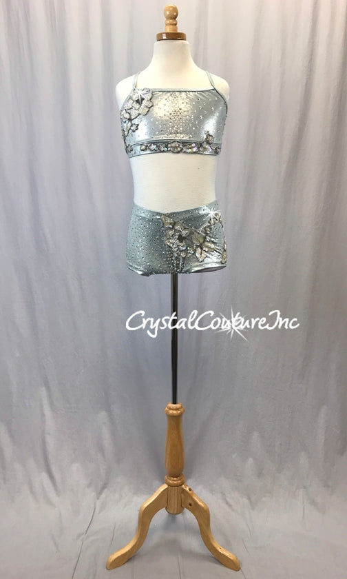 Shimmery Lt Grey Top and Boy-Cut Short with Beaded Appliques - Swarovski Rhinestones