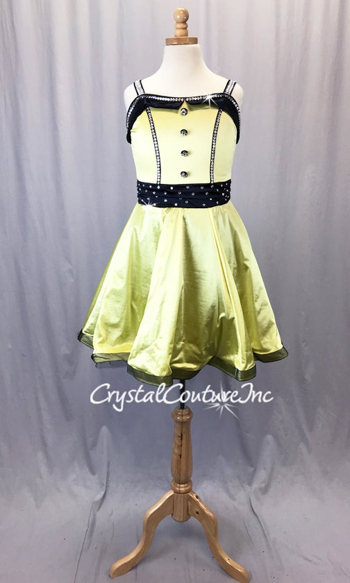 Shimmery Yellow with Black Trim Dress - Swarovski Rhinestones