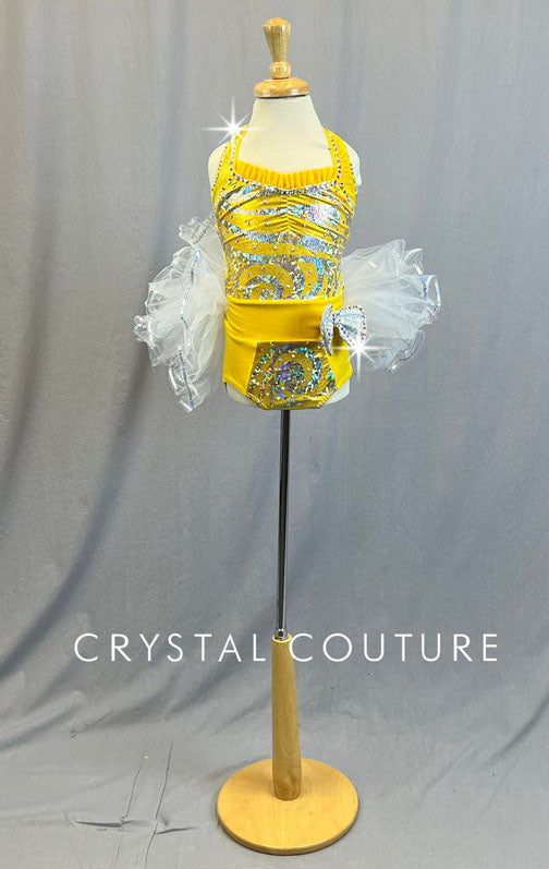 Yellow and Silver Leotard with Bustle Skirt- Rhinestones