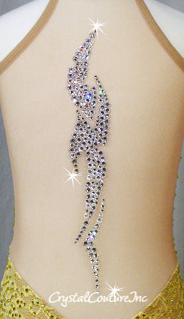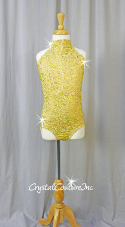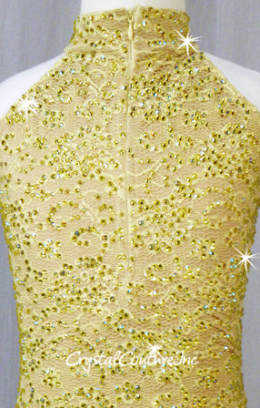 Yellow/Nude High-Neck Floral Lace Leotard with Mesh Back - Swarovski Rhinestones